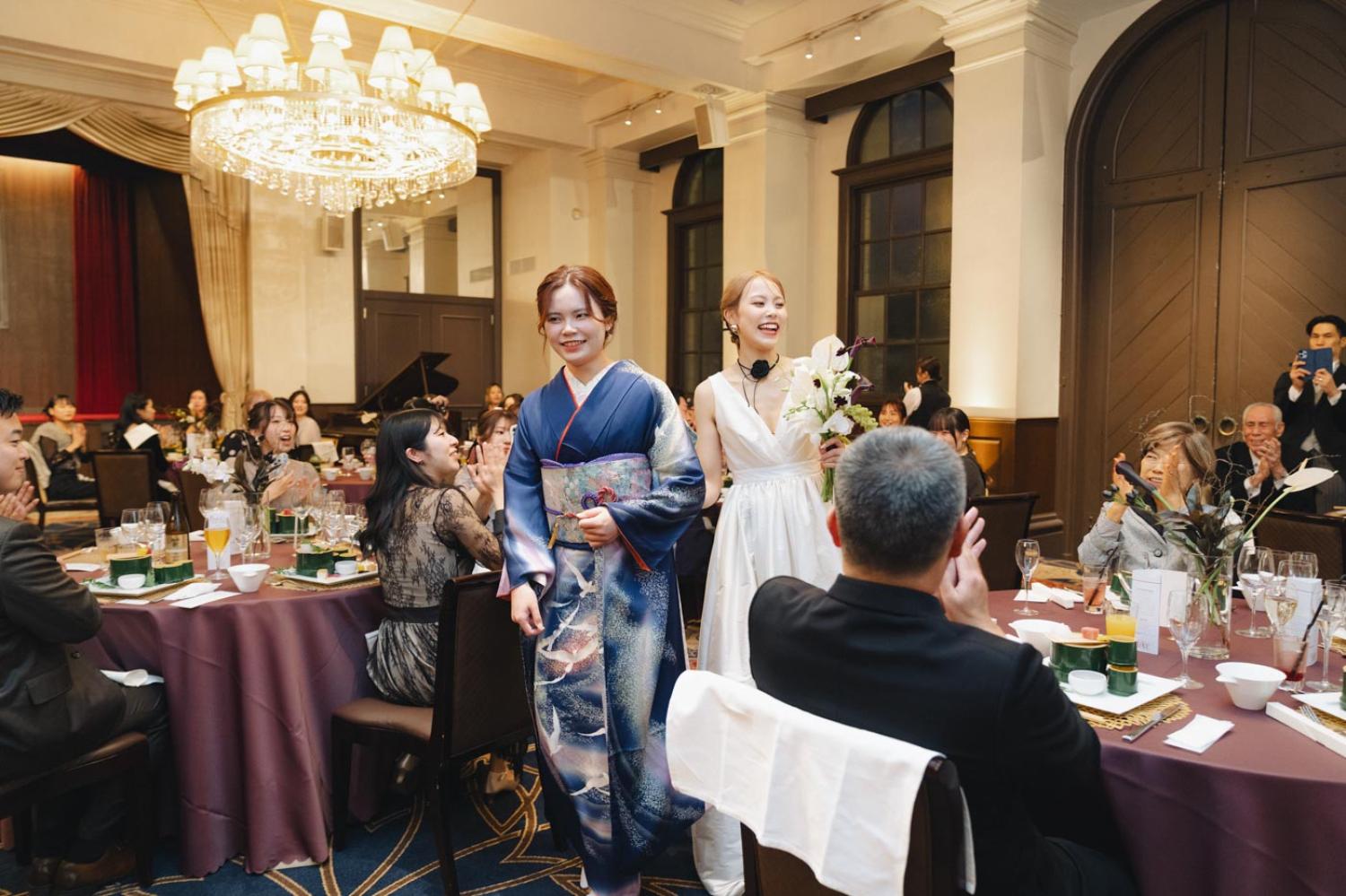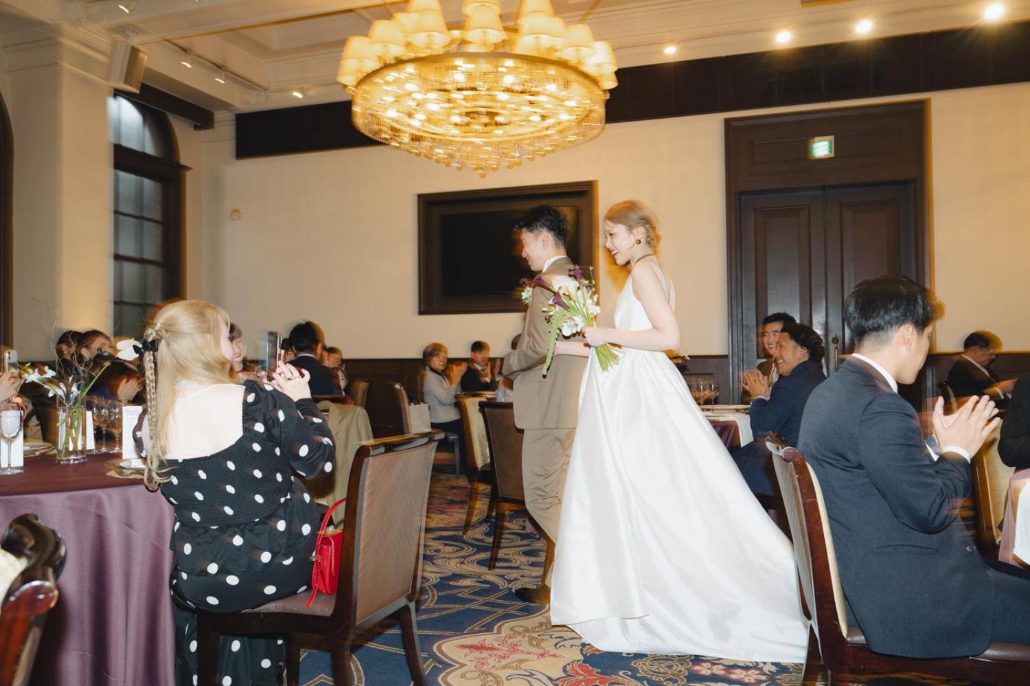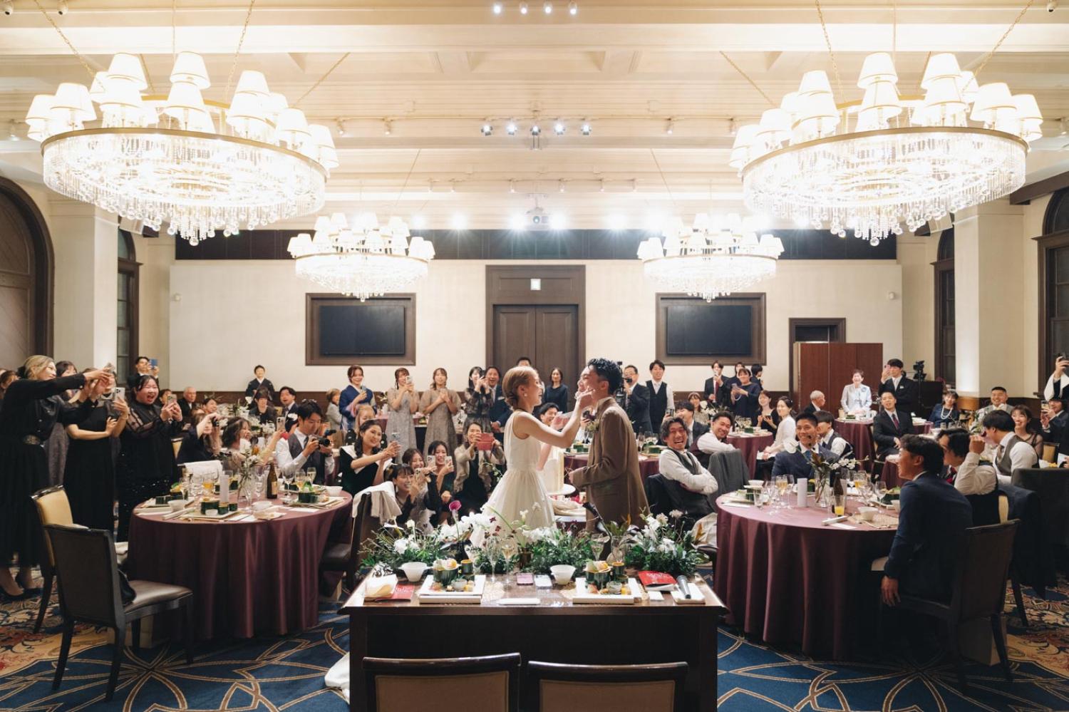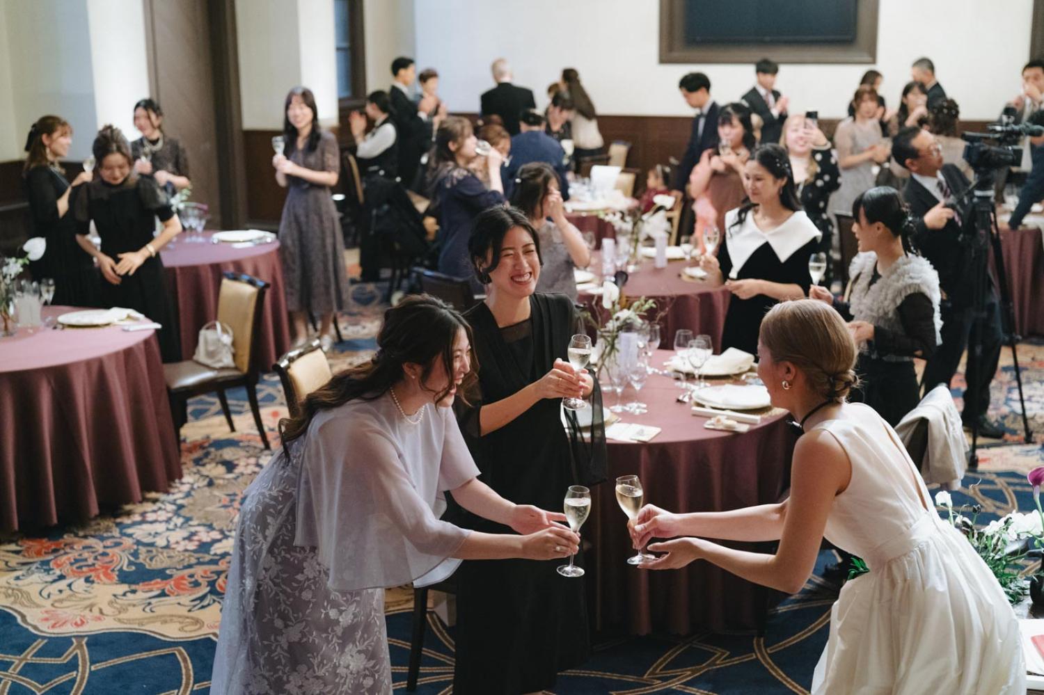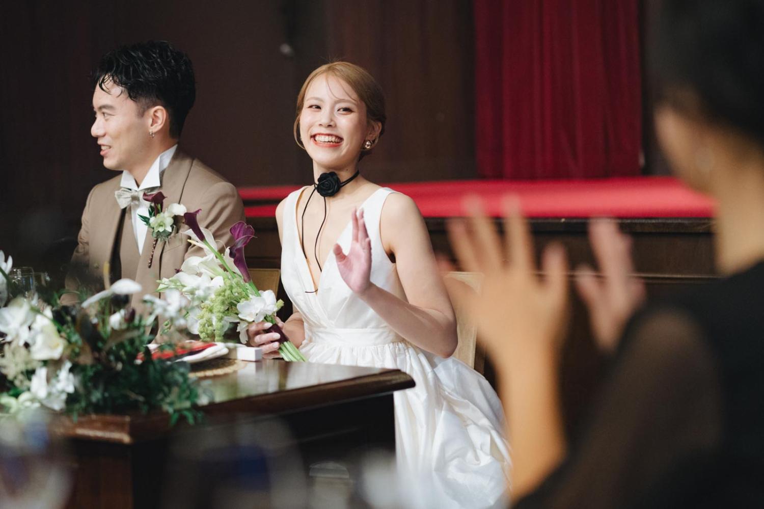 新郎新婦様お二人が何気なく会話をしているところ、挙式前のチャペルで待つご家族やご友人の表情、高砂席で友人たちと楽しく会話をしているところなど、進行表に記載されてない自然な感じの場面を積極的に撮っています。